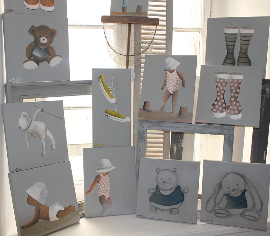 Au sein de son atelier, Gis vous présente un grand nombre de tableaux. Les différents thèmes exploités peuvent être reproduits sur demande. Toutes les œuvres peuvent être commandées et envoyées via la poste.